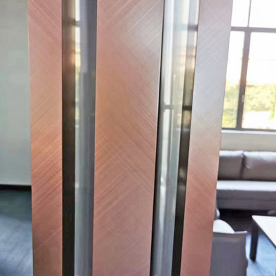 공예 유리와 교차하는 매우 가는 적동광 색 스테인레스 강 방 칸막이