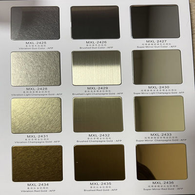 PVD 색의 스테인리스 스틸 시트 는 다양한 색상 으로 사용 된다. 이 공정 은 표면 에 티타늄 과 질소 에 기반 한 세라믹 코팅 을 적용 한다.다양한 색상 을 얻기 위해 공정 및 합금 변형 을 사용 한다.