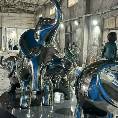 Luxury Hotel Lobby Custom Blue Silver 201 304 316L Stainless Steel Elephant Statue for Commercial Plaza Decoration
