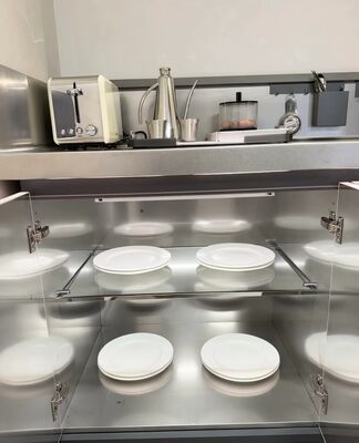 스테인리스 스틸은 자연적으로 박테리아 증식을 억제합니다. 부드럽고 비다공성 표면은 몇 초 만에 닦아낼 수 있습니다. 독한 화학 물질이 필요 없으며 비누와 물만 있으면 됩니다.